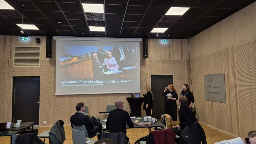 The day ended with the presentation of a new WAN-IFRA innovation programme: GAMI Incubator #Finland. The programme, which officially kicked-off on 29 – 30 September brings together three Finnish media companies and three international startups for a collaborative six-month journey exploring and experimenting with new ideas and technologies. Taru Salo, Head of Digital Development, Data & AI and Laura Ihalainen, Creative Development Manager and Journalist, both at Viestimedia presented the challenge they are working on: Increasing/Maintaining public trust during political campaigns by tackling misinformation. To address this challenge, the Norwegian startup Factiverse, is bringing its AI-powered fact-checking technology. CEO and Co-founder of Factiverse Marie Amelie expressed enthusiasm for the collaboration, noting that “this partnership with Viestimedia would not have happened outside of the programme.”